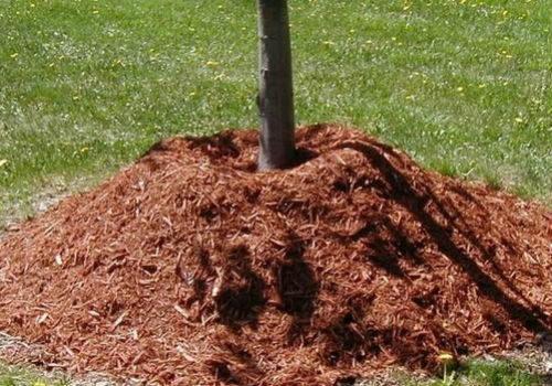 Перед мульчированием вносится влагозарядный полив. Рекомендуемая высота мульчи – на половину штыковой лопаты. Зимой снег около дерева притаптывают. Это исключит проникновение грызунов.