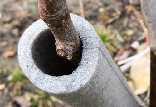 Вспененный полиэтилен для теплоизоляции труб поможет утеплить яблоню на зиму. Для этого его разрезают по шву и надевают на деревце. Его можно зафиксировать скотчем или шпагатом, чтобы лучше держался. С таким утеплителем дереву будет не холодно, до ствола не доберутся грызуны. И выглядит такое укрытие эстетично. Стоимость такого материала очень низкая, а применяться он может многократно.