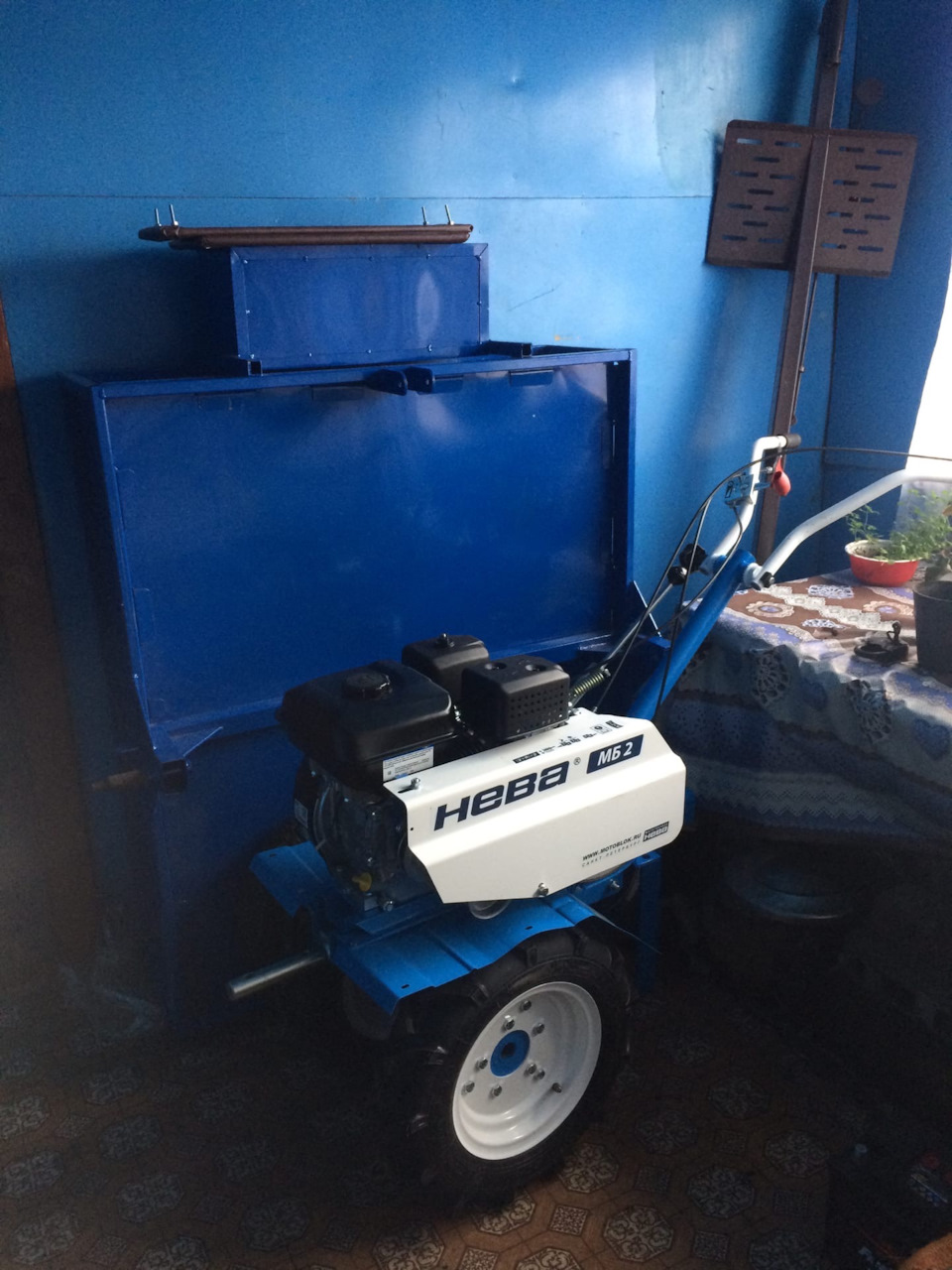 У меня мотоблок Нева МБ2 Мультиагро с движком Бриггс серии Вангуард. Купил агрегат в марте 2019. Решил, что пора мне вплотную заняться своим участком, а то, что он простаивает? А так хоть своя картошка будет. Конструкция у Невы крепкая, сборка хорошая, и щиток металлический, а не пластиковый.