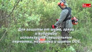 Бензокоса DDE GB33RD используется для обработки участков не более 1000 м². Устройство имеет триммерную головку для мягкой травы и трехлопастной нож для зарослей мелкого кустарника с диаметром стебля не больше 20 мм. Имеется плечевой ремень; штанга разборная, что удобно для перевозки