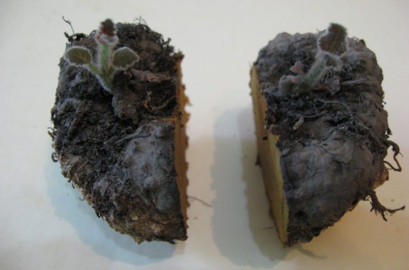 Разведение цветка клубнями является наиболее простым и доступным. Клубень культуры нужно разделить на две части так, чтобы каждая из них получила хотя бы по одной почке.