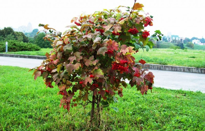 В ландшафтных композициях калину используют в виде куста или штамбового деревца.