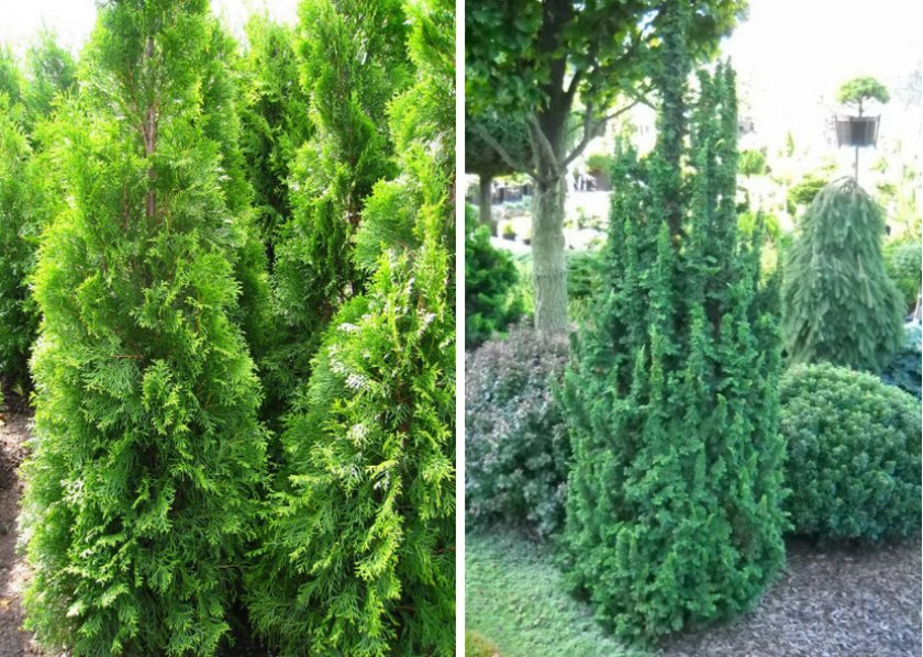 Туя западная Малониана и ее разновидности Ауреа и Холуб благодаря высокой морозоустойчивости широко используются в регионах с холодными зимами для дизайна ландшафта, также туя – частый гость южных садов. Несколько вариантов применения хвойной культуры в декоративном садоводстве представлены на фото.