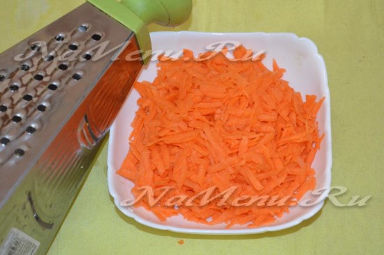 - Капусту нашинковать полосками в 2–3 мм, кабачки нарезать тонкими пластинками, перец – брусочками, морковь измельчить на крупной терке.