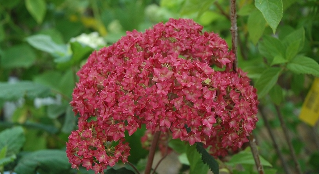 Это кустарник, вырастающий до 3 м высотой. Листья крупные зеленые сверху и сизые снизу. Соцветия появляются на однолетних веточках, имеют плоскую форму или форму шара размером 15-20 см. Предпочитает расти в затененных местах, не выносит засуху. Эта разновидность достаточно неприхотлива, ей не страшны морозы и затененность участка. Благодаря быстрому росту древовидная гортензия достаточно быстро наращивает новые побеги. В условиях умеренного климата цветет с июля по ноябрь.