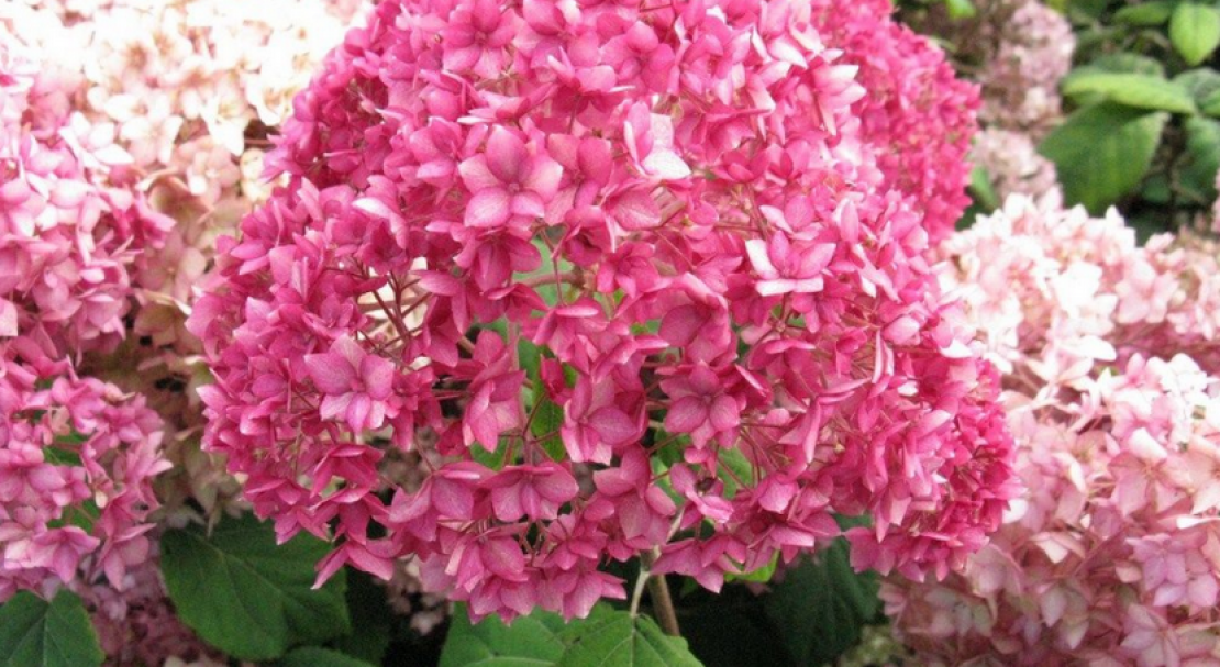 Декоративность гортензии сохраняется в течение всего периода цветения, по мере выгорания на солнце лепестки меняют оттенок с малинового на нежно-розовый