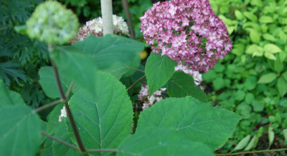 «Аннабель» по моему мнению, это самый распространенный сорт. Большой раскидистый кустарник, отлично переносит зимовку, обладает красивыми пышными соцветиями белого цвета. Листья достигают 15 см, сохраняя свой зеленый цвет до заморозков.