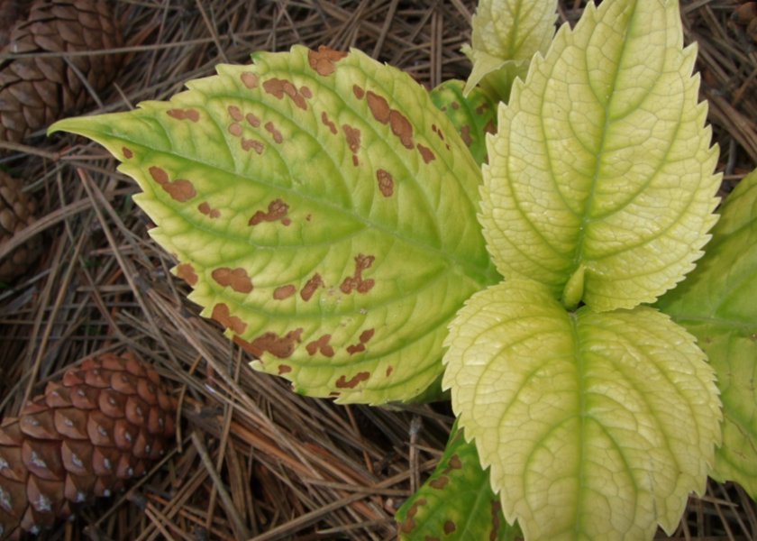 Гортензия Белла Анна отличается хорошим иммунитетом, но может заболеть, если произрастает вблизи от водоемов, вследствие нарушения работы дренажной системы.