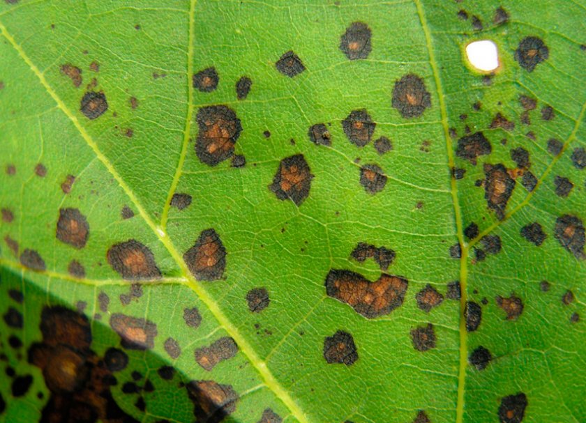 Для нейтрализации паутинного клеща, чья деятельность приводит к высыханию листовой пластины, рекомендуется использовать Фитоверм. Средство борется также с тлей и трипсами.