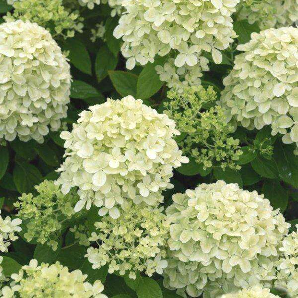 Компактная гортензия с многочисленными цветками. Куст высотой 60 см и диаметром 80 см. Цветки светло-зелёные округлой формы. Цветение в июле-сентябре. Место солнечное или полутенистое. Почва влажная, дренированная.