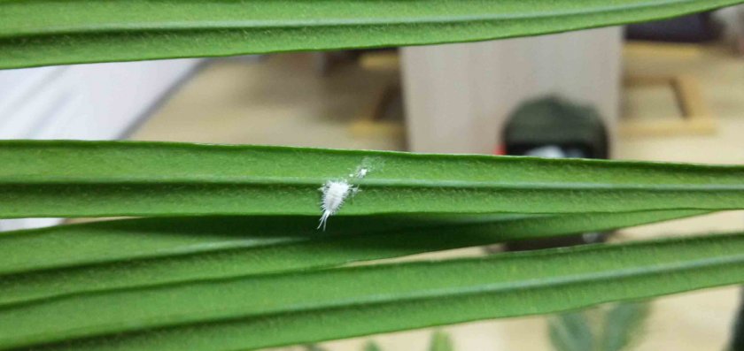 - При поражении червецом желтеют и сохнут листья хризалидокарпуса ареки. Для борьбы протрите все части куста спиртом и проведите обработку инсектицидным препаратом.