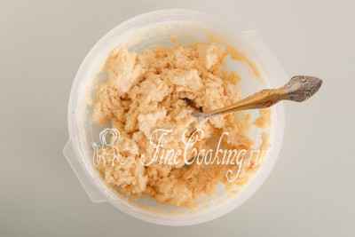 Натёртое масло с мукой собрать горкой, сделать углубление.