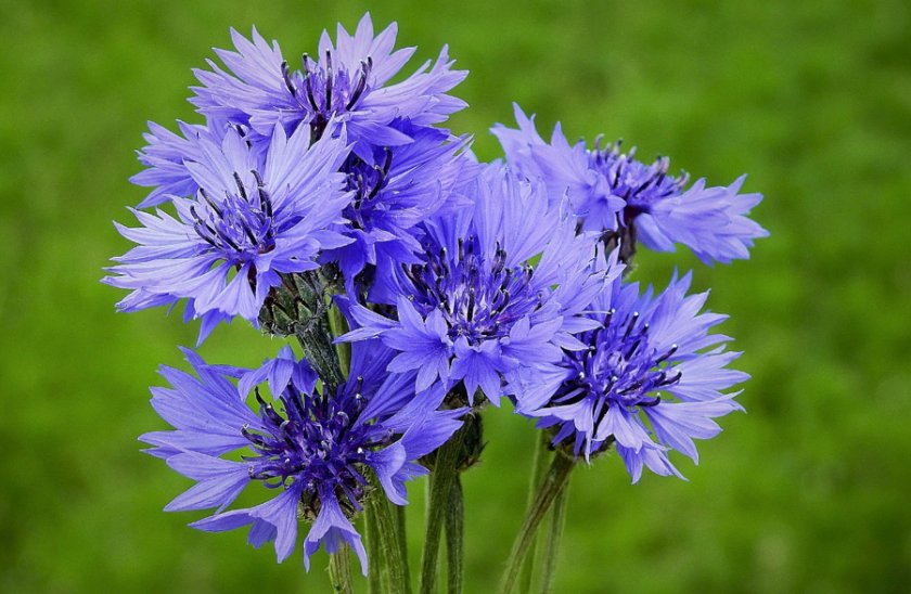 - Василёк. Считается самым популярным растением. Соцветия характеризуются ярко-синим оттенком. Достоинством васильков считается то, что они быстро возобновляются.