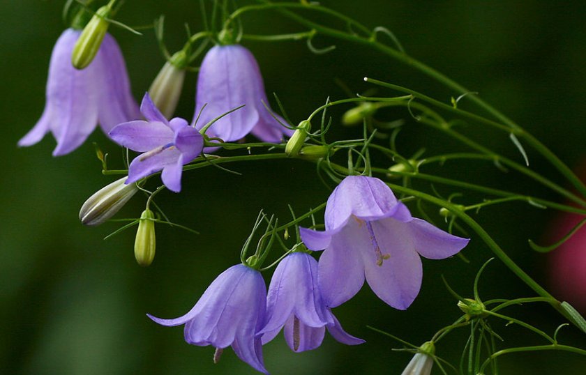 - Колокольчик. Преимущество этого вида заключается в том, что он обладает высокой морозостойкостью (до -20°С). Соцветия обладают колокольчатой структурой. Они бывают разного оттенка: белыми, синими, пурпурными и розовыми.
