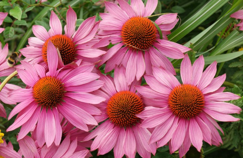- Эхинацея. Относится к многолетним растениям, которым свойственны нежно-розовые или насыщенно-красные соцветия. Начинает цвести культура с мая. Будьте осторожны, поскольку эхинацея способна провоцировать аллергические реакции.
