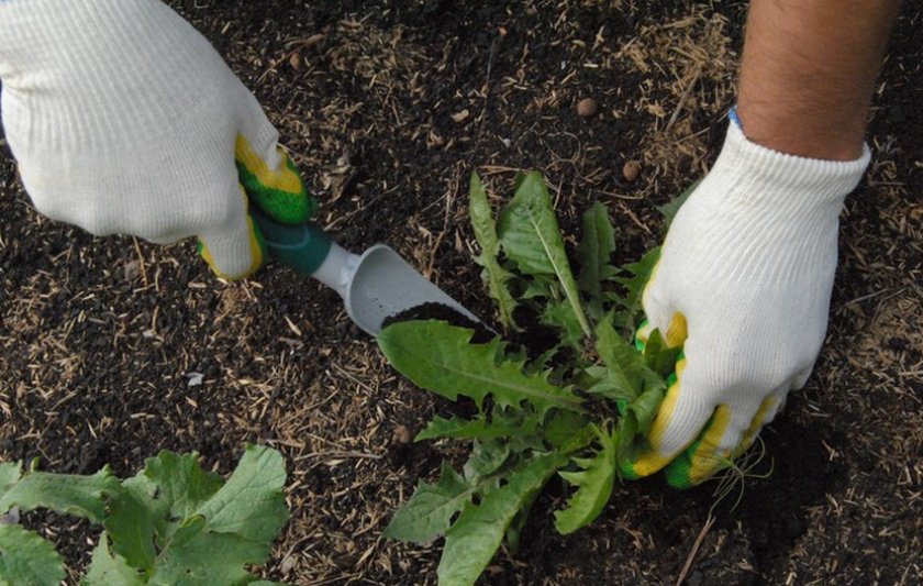 Чтобы провести удаление сорняков, потребуется использовать садовый инвентарь. Оптимальный вариант — корнеудалитель или триммер. Лучше всего это делать вручную, чтобы не повредить злаки. Можно также использовать гербицид избирательного действия «Деймос» (5 мл на 5 л воды). Процедуру обработки проводят каждый месяц.