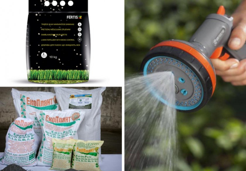 В первый год после посева вносить удобрения не рекомендуется, поскольку во время подготовки почвы использовался навоз. Переизбыток питательных веществ может привести к тому, что цветочные культуры начнут болеть. На второй год после посадки рекомендуется использовать комплекс минеральных удобрений «Фертис» (100 г на 10 л воды) или «Экоплант» (100 г на 7 л воды). Весь приготовленный объём рабочей жидкости нужно распределить на 20 м².