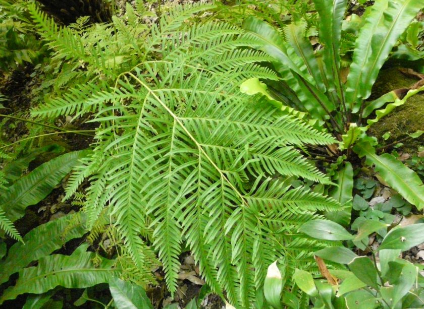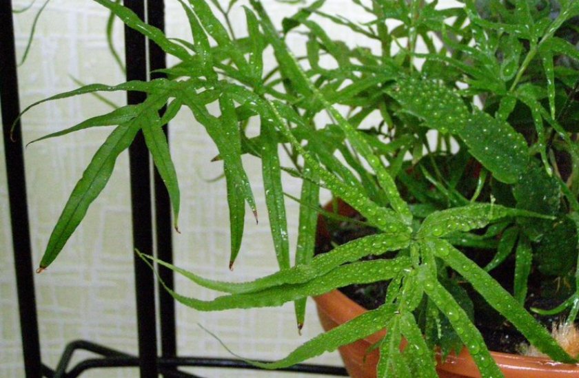- Птерис ленточный (Pteris vittata) выделяется красивым изгибом дуговидных листьев, достигающих в длину 1 м, и длинными перьями-долями, расположенными не парами, а поочередно.
