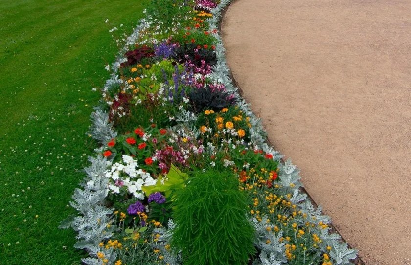 Например, узкий цветник — 50 см должен протягиваться не менее чем на 1,5 м, при необходимости доходить до 20 м