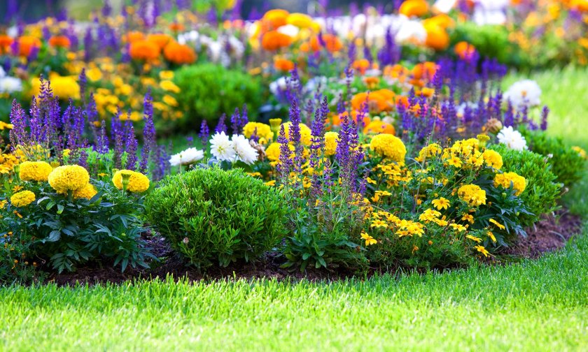 Красочность оформления зависит не от количества, а от сортовых вариаций. Например, вы решили высадить бархатцы, выбирайте сорта по цветовой гамме (оранжевый, жёлтый, красно-бордовый). Это поможет создать узор и уйти от монотонности.