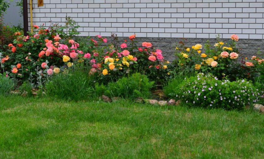- Уходить от эффекта пестроты. Комбинируйте сорта по сочетанию цвета. Контрастных тонов может быть не больше 2–4.