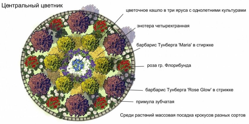Но в случае, когда клумба находится между двумя пешеходными аллеями и обозревается с двух сторон, то самые большие насаждения располагаются в ее центральной части.