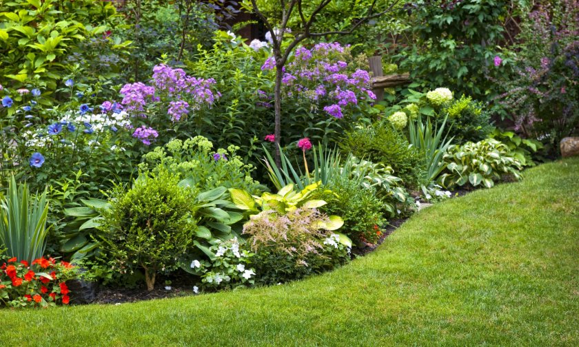 Закруглённые, скошенные края цветника смотрятся гармоничней прямых. Края можно делать вогнутыми, заканчивать декоративным заборчиком, природным камнем