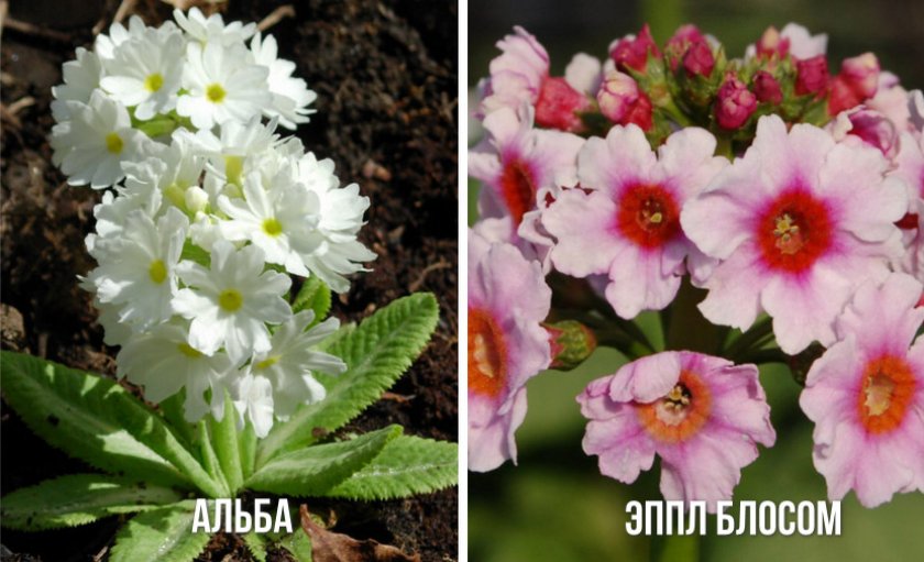 Есть 4 сорта примул, у которых похожи между собой соцветия и их оттенки, но есть другие различия.
