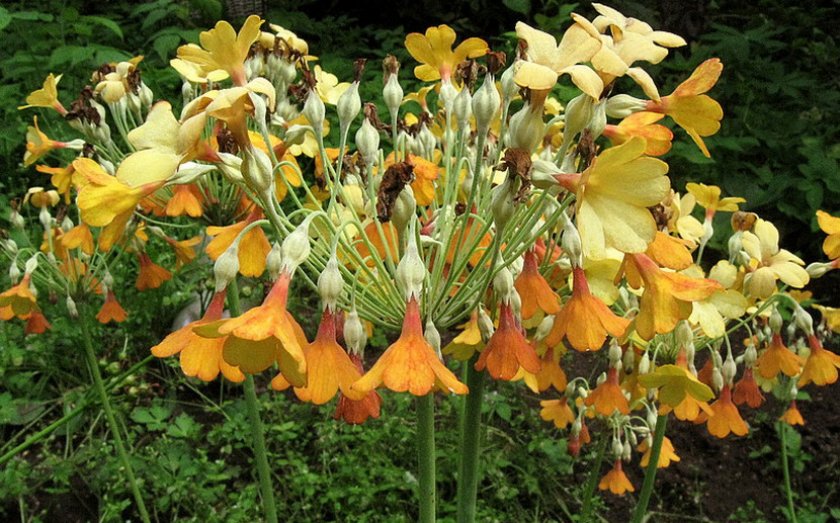 Растение довольно высокое: может вырастать до 120 см в высоту. Соцветие примулы Флоринды собрано в среднем из 30 мелких цветков, которые похожи на колокольчики желтого оттенка.
