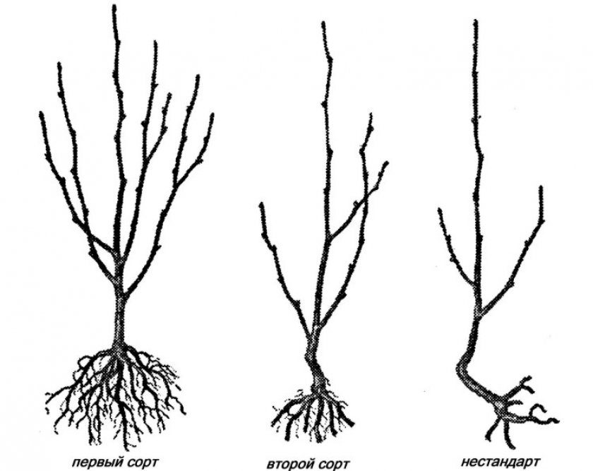 Каждый саженец должен быть примерно 1,5 м в высоту и иметь на стволе не менее 3 веточек. Особое внимание стоит уделить корням. Сухие или больные, а также придаточные мелкие отростки необходимо сразу удалять. Все срезы обязательно рекомендуется обрабатывать садовым варом, чтобы не допустить проникновения инфекции.