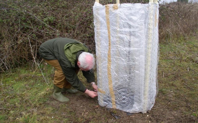 Чтобы саженец благополучно перезимовал, его защищают от морозов, метелей и грызунов. Порядок действий: