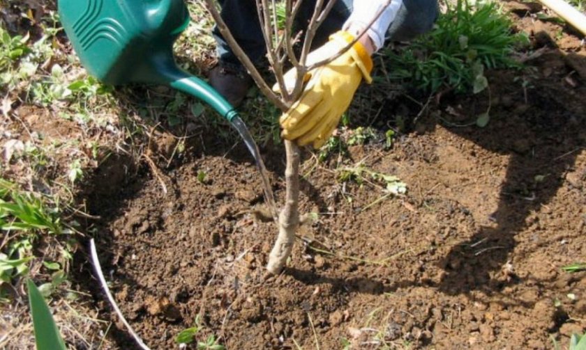 - Поливают дерево. Норма – 5 л. Когда подступят холода, приствольную лунку засыпают – чтобы в ней не застаивалась зимой талая вода.
