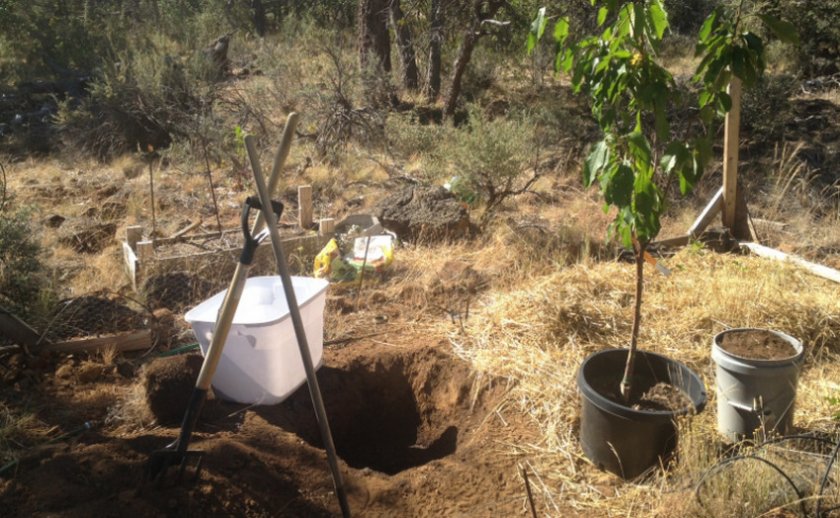 - Перекопка участка незадолго до посадки. Это мероприятие желательно сделать заранее. В идеале – весной. Яму же готовят не позднее, чем за 2 недели – если нарушить это правило, корневая шейка будет заглублена в почву из-за оседания грунта.
