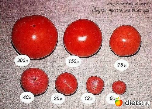 вот интересная картинка, на которой указан вес помидоров разного размера: