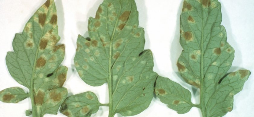 Грибок septoria обживает поначалу нижние листья, после гибели которых перебирается выше. Другое название болезни – белая пятнистость – указывает на отличие от других инфекций.
