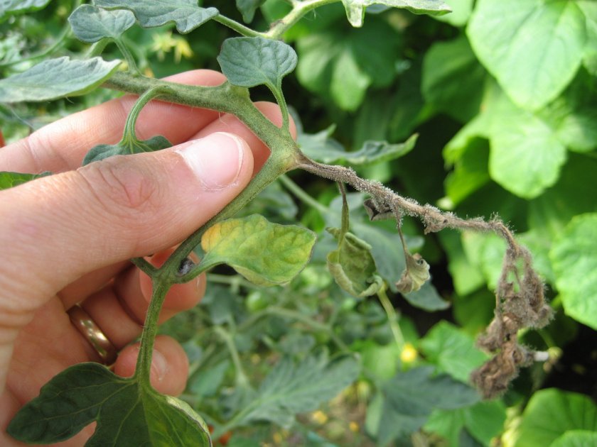 Грибковое заболевание, которое проявляется возникновением коричневых участков на оборотной стороне листьев рассады. Спустя некоторое время, листья растений сплошь коричневеют и опадают, а заболевание переходит на стебли томатов. Бороться с этим заболеванием можно только при помощи химических препаратов (фунгицидов) Акробат, Дитан, Квадрис. Обработку необходимо проводить незамедлительно, при обнаружении первых признаков недуга.