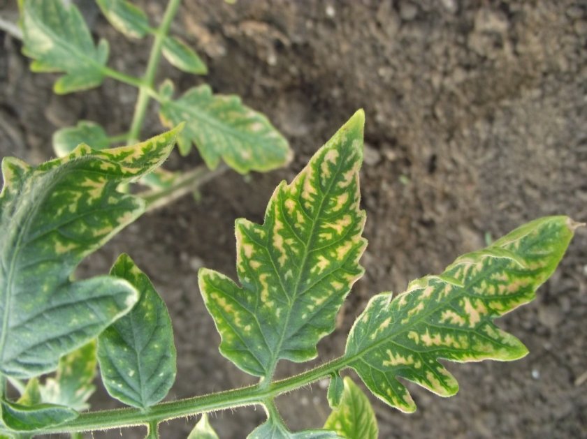 Проявляется мельчанием листьев, возникающим за счёт задержки роста и развития растений. Поражённая рассада хуже плодоносит, давая плоды мелкого размера. Они, как правило — деформированной формы, а основной особенностью таких плодов является отсутствие в них семян.