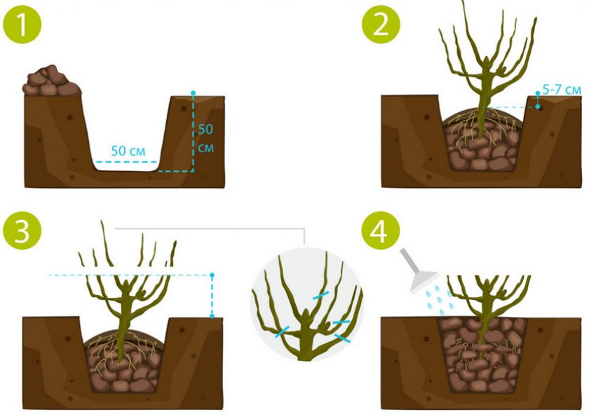 Саженцы высаживают осенью, ранней весной. Почву готовят за месяц до осенней посадки. Освобождают участок от мусора, сорняка. Вносят в землю перегной – 3,5 килограмма на квадратный метр. Добавляют 25 грамм калия сернокислого, 120 грамм суперфосфата. Вместе с удобрениями перекапывают участок на штык лопаты.