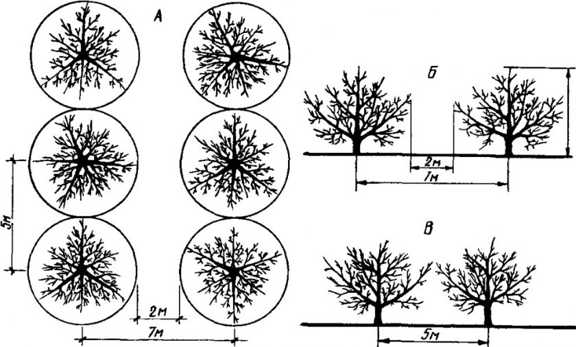 - Выбрать место. Оно должно быть тёплым, солнечным, расположенным вдали от низин. Имеющиеся постройки и большие деревья должны находиться с северной стороны от груши, их наличие очень желательно, так как они защищают от холодного ветра. В качестве соседей подойдут любые виды, кроме рябины. Также рядом должны быть опылители, вместе с которыми дерево должно образовывать треугольник со сторонами не менее 2,5 м, а лучше — 5 м.