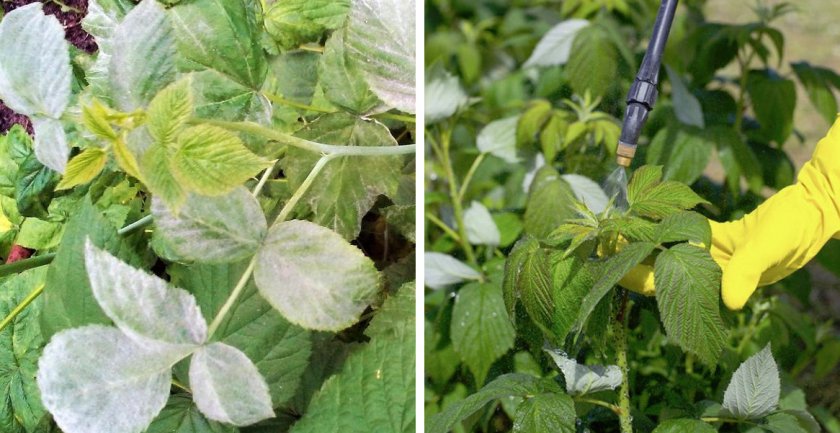 При появлении симптомов болезни в период массового цветения или во время плодоношения кусты малины опрыскивают фунгицидами. Чередуют препараты: