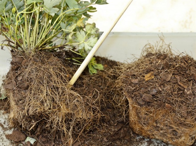 - Поместите саженец в центр контейнера и заполните почвой воздушные карманы (отступая, при этом 2 см от краев емкости).