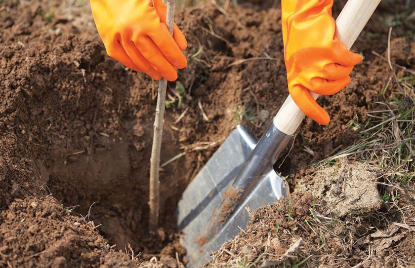 Уложив на дно приготовленной лунки дренажный слой из битого кирпича и заполнив яму подготовленным субстратом (так, чтобы образовался холмик), остаётся дождаться весны и выполнить следующие посадочные действия: