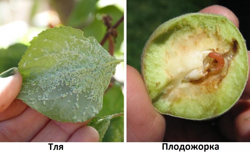 В некоторых случаях описанные плодовые деревья страдают от тли и плодожорки, избавиться от которых помогут препараты «Искра», «Децис» или «Инта-Вир», с добавлением такого же количества жидкого мыла.