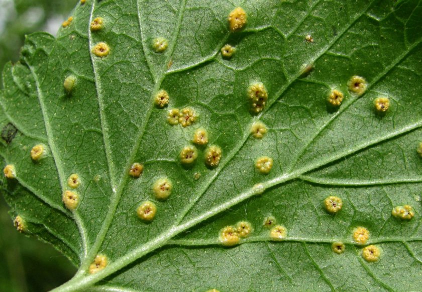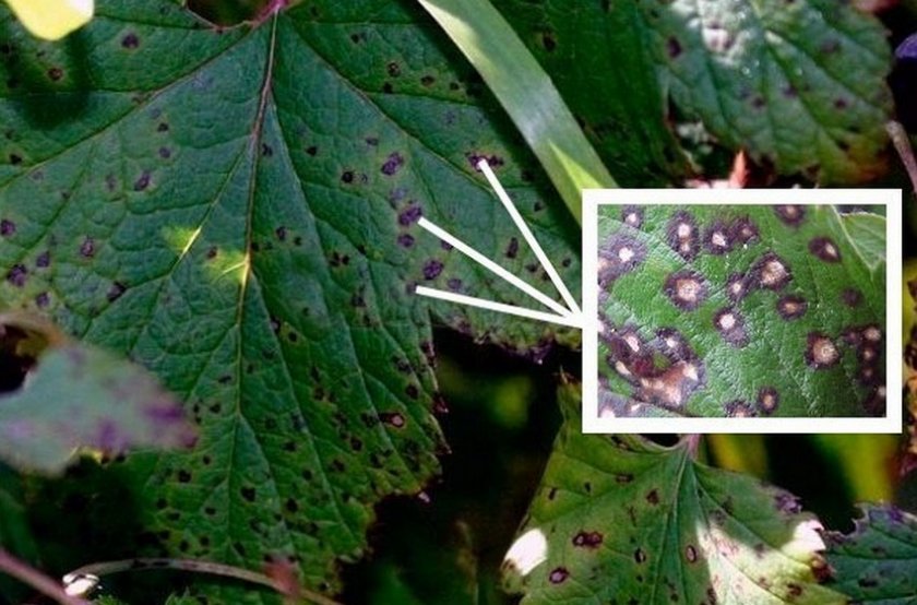 - Антракноз – болезнь листьев, их черешков, плодоножек и плодов. Поражает растения, начиная с мая. Характеризуется появлением мелких пятен коричневого цвета, которые со временем разрастаются. Листья начинают желтеть, скручиваться и опадать. Побеги замедляют рост и не успевают вызреть. Для предотвращения болезни рано весной и поздно осенью следует перекопать землю вокруг куста. А перед тем как распустятся почки, опрыскать раствором купороса. Можно применить бордоскую жидкость. Ею опрыскивают четыре раза за время вегетации: в период распускания почек, по окончании цветения, через полмесяца после цветения, после сбора урожая.