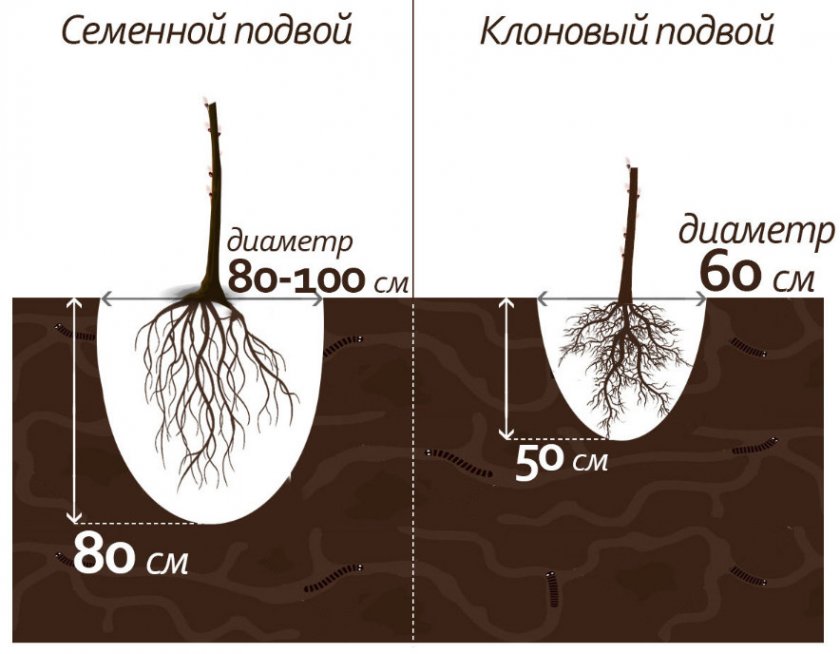 Клоновые подвои отличаются поверхностной корневой системой, поэтому выращенные на них деревья требуют опоры. Однако, по той же причине, такие растения можно выращивать там, где обнаружен высокий уровень грунтовых вод. Ещё одна особенность вегетативных подвоев — раннее плодоношение, в среднем на 3-4 год после посадки.Принята классификация подвоев по силе роста.