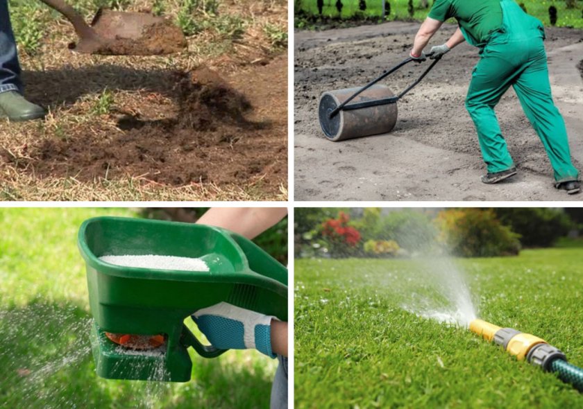 При устройстве такого вида травяного покрытия нужно тщательно провести предварительные работы, и только потом сеять травосмесь.