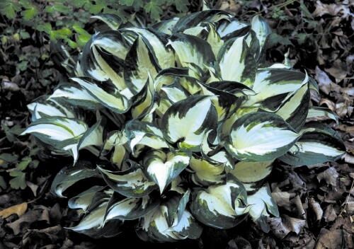 Высота растения: 35 см, ширина – до 55 см. Эта хоста имеет контрастное сочетание белого центра и темно-зеленого пламеобразного окаймления. Довольно быстро разрастается.