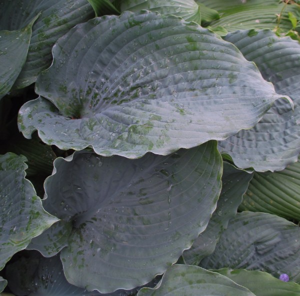 Для хосты Abiqua Drinking Gourd характерны листья темного сине-зеленого цвета, плотные, восковые, морщинистые, их почти не повреждают слизни. Форма листьев – характерная глубоко-чашевидная.
