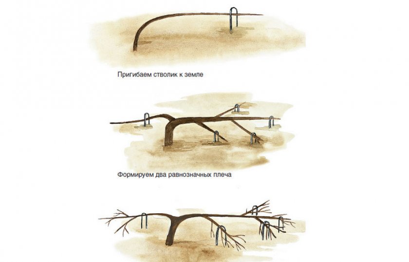 - изгибание и закрепление веток в нужном положении – позволяет регулировать рост и расположение;