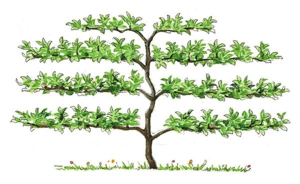 Эта форма напоминает горизонтальный кордон, но предполагает наличие большего количества ярусов, а не только одного. Расстояние между ярусами должно составлять не менее 30 см.
